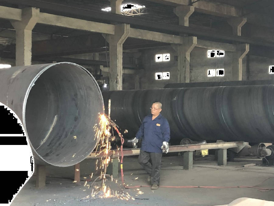 螺旋管是以帶鋼卷板為原材料,經(jīng)常溫擠壓成型,以自動雙絲雙面埋弧焊工藝焊接而成的螺旋縫鋼管。螺旋鋼管將帶鋼送入焊管機組,經(jīng)多道軋輥滾壓,帶鋼逐漸卷起,形成有開口間隙的圓形管坯,調(diào)整擠壓輥的壓下量,使焊縫間隙控制在1~3mm,并使焊口兩端齊平。(1)原材料即帶鋼卷,焊絲,焊劑。在投入前都要經(jīng)過嚴格的理化檢驗。