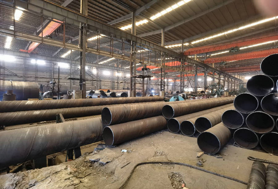 螺旋管是以帶鋼卷板為原材料,經常溫擠壓成型,以自動雙絲雙面埋弧焊工藝焊接而成的螺旋縫鋼管。螺旋鋼管將帶鋼送入焊管機組,經多道軋輥滾壓,帶鋼逐漸卷起,形成有開口間隙的圓形管坯,調整擠壓輥的壓下量,使焊縫間隙控制在1~3mm,并使焊口兩端齊平。(1)原材料即帶鋼卷,焊絲,焊劑。在投入前都要經過嚴格的理化檢驗。