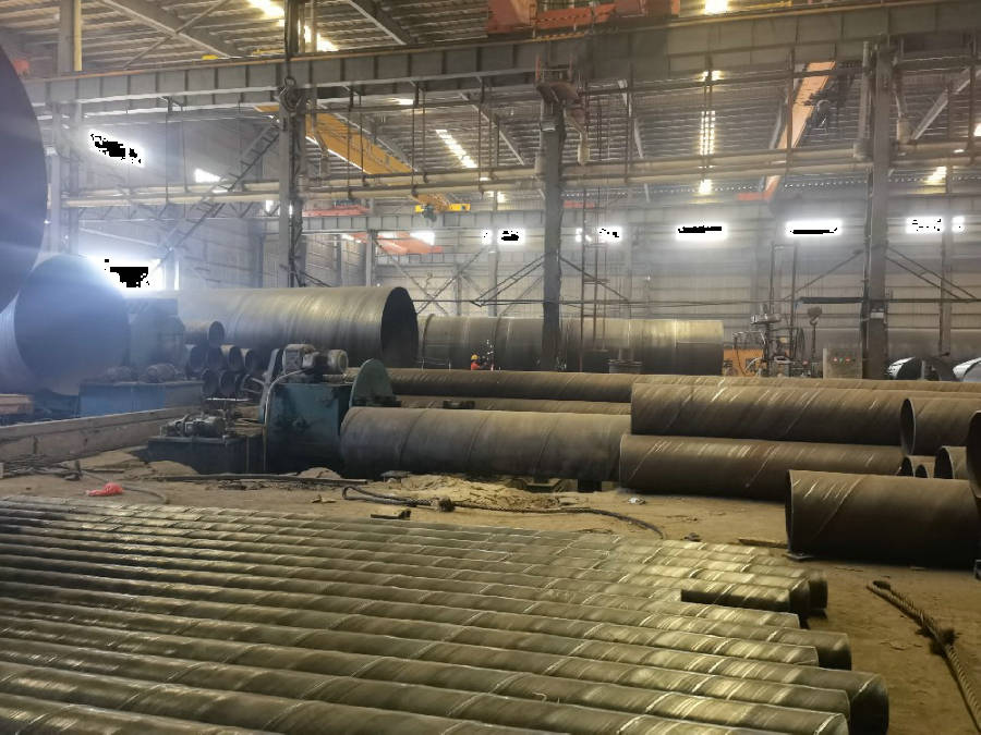 螺旋管是以帶鋼卷板為原材料,經(jīng)常溫?cái)D壓成型,以自動(dòng)雙絲雙面埋弧焊工藝焊接而成的螺旋縫鋼管。螺旋鋼管將帶鋼送入焊管機(jī)組,經(jīng)多道軋輥滾壓,帶鋼逐漸卷起,形成有開(kāi)口間隙的圓形管坯,調(diào)整擠壓輥的壓下量,使焊縫間隙控制在1~3mm,并使焊口兩端齊平。(1)原材料即帶鋼卷,焊絲,焊劑。在投入前都要經(jīng)過(guò)嚴(yán)格的理化檢驗(yàn)。