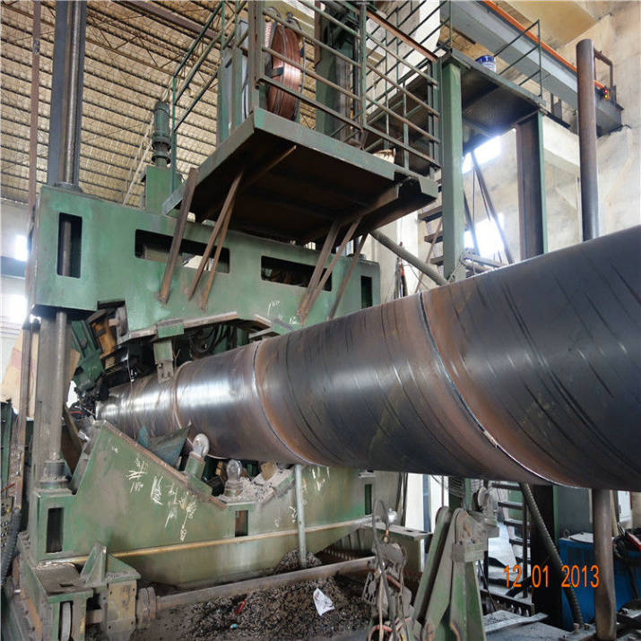 螺旋管是以帶鋼卷板為原材料,經(jīng)常溫?cái)D壓成型,以自動(dòng)雙絲雙面埋弧焊工藝焊接而成的螺旋縫鋼管。螺旋鋼管將帶鋼送入焊管機(jī)組,經(jīng)多道軋輥滾壓,帶鋼逐漸卷起,形成有開(kāi)口間隙的圓形管坯,調(diào)整擠壓輥的壓下量,使焊縫間隙控制在1~3mm,并使焊口兩端齊平。(1)原材料即帶鋼卷,焊絲,焊劑。在投入前都要經(jīng)過(guò)嚴(yán)格的理化檢驗(yàn)。